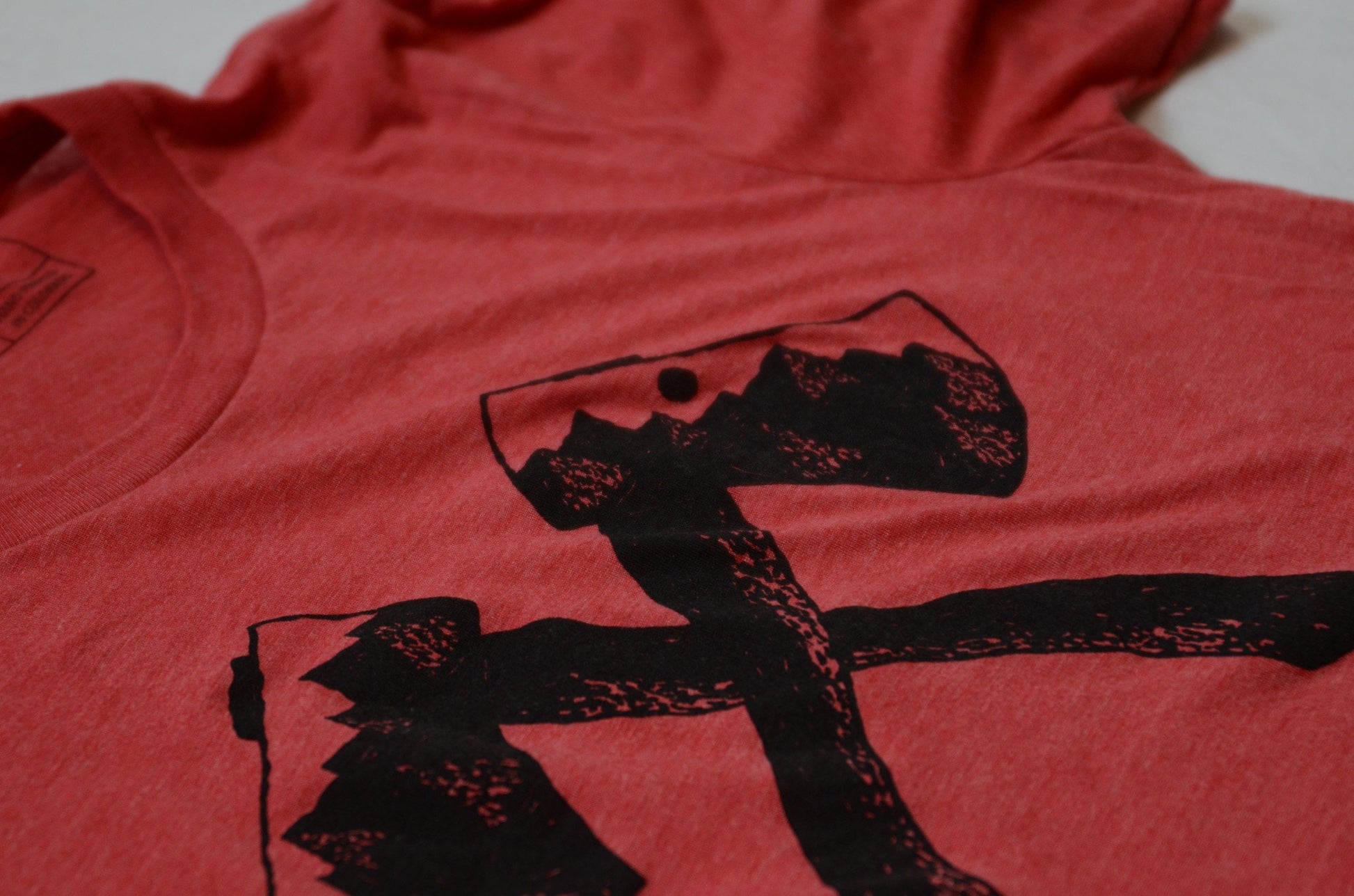 Our Axe Tee in red is a screen printed t shirt with white water-based ink. With a retail fit, this incredibly soft t shirt is made out of 100% ringspun cotton. Our soft mens t shirts are unisex in wear. Also available in gray and black.